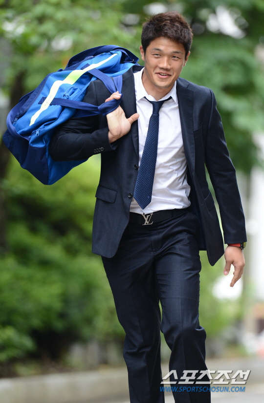 이날 홍명보호 선수단은 모두 정장을 입고 파주로 왔다. 검은색 정장에 넥타이를 살짝 풀어헤친 정성룡은 "넥타이가 짧아서 어쩔 수 없었다. 정장도 겨울 정장이어서 조금 덥다"고 말해 취재진을 웃음짓게 했다.