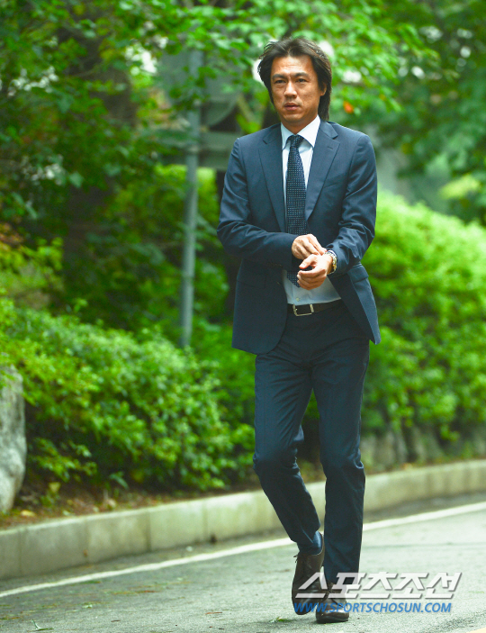 2014 브라질월드컵 홍명보호가 닻을 올렸다. 동아시안컵에 출전할 23명의 선수들과 홍명보 감독을 비롯한 코칭스태프가 17일 파주 NFC에 모였다. 정장을 말끔하게 차려입은 홍명보 감독이 걸어서 NFC에 들어오고 있다. 한편, 홍명보 감독은 지난 대표팀 선수명단 발표 기자회견에서 '선수소집 때 선수들이 정장을 입을 것과 차를 가지고 NFC에 들어오지 않도록 하겠다'고 밝힌 바 있다. 파주=정재근 기자 cjg@sportschosun.com/2013.07./17/