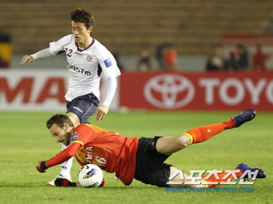 ◇2012년 아시아챔피언스리그에 나선 조슈아 케네디(오른쪽)의 모습. 나고야(일본)=사진공동취재단