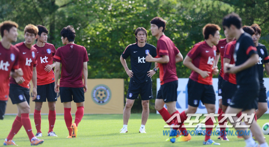 홍명보호가 전술 훈련을 통해 동아시안컵 대회 준비에 박차를 가했다. 18일 파주NFC(국가대표팀 트레이닝센터)에서 열린 소집 이틀째 훈련에서 홍명보 A대표팀 감독은 목소리를 높였다. 김창수(가시와) 등 J-리거 6명이 합류해 23인의 태극전사가 한 자리에 모인 첫 날이었다. 전술 훈련을 통해 첫 출항을 앞둔 홍명보호의 밑그림이 처음 공개됐다.