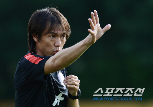 18일 파주 축구트레이닝센터에서 축구대표팀이 동아시안컵 축구대회를 앞두고 훈련을 했다. 홍명보 감독이 전술훈련에서 선수들의 위치를 지정해주고 있다. 파주=정재근기자 cjg@sportschosun.com/2013.07.18/ |