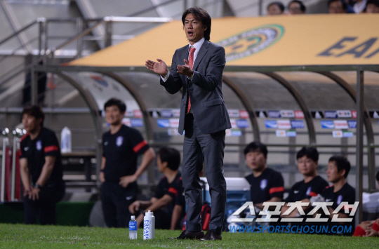 20일 오후 서울 상암월드컵구장에서 2013 동아시아컵 한국과 호주의 경기가 열렸다. 한국 홍명보 감독이 벤치에서 선수들의 시합을 격려하고 있다. 상암= 김경민 기자 kyungmin@sportschosun.com / 2013.07.20.