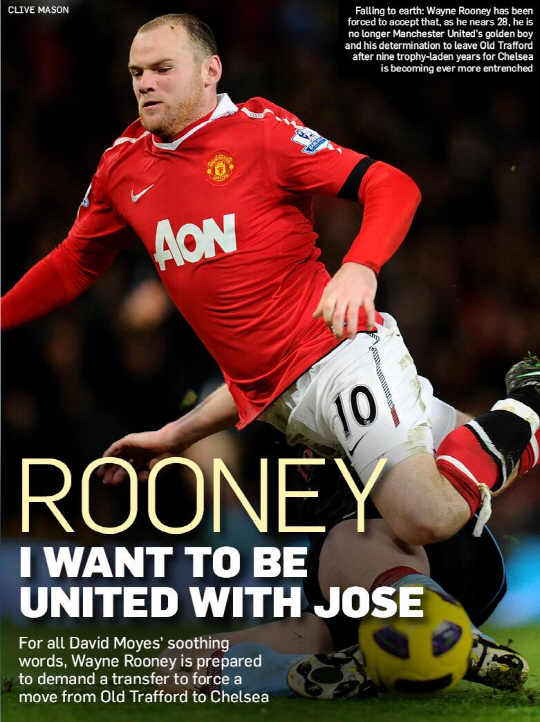 '분노와 혼란'의 웨인 루니(맨체스터 유나이티드)가 자신을 알아주는 주제 무리뉴 감독과 함께 첼시에서 뛰기로 마음을 정했다.