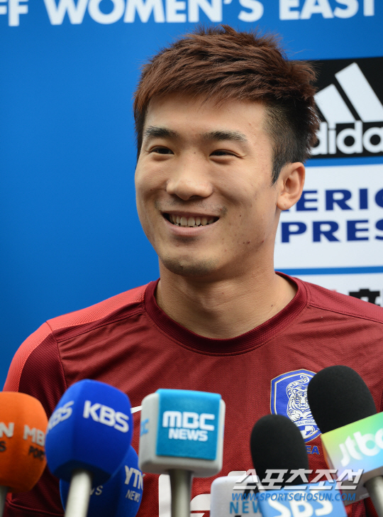 2013 동아시안컵 축구대회에 출전 중인 축구대표팀이 22일 파주 축구트레이닝센터에서 훈련을 했다. 훈련 전 고요한이 취재진과 인터뷰를 하고 있다. 지난 20일 호주와의 첫 경기에서 0대0 무승부를 기록한 대표팀은 오는 24일 중국과 경기를 치른다. 파주=정재근기자 cjg@sportschosun.com/2013.07.22/
