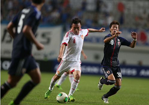 ◇중국 미드필더 왕용포(가운데)가 21일 서울월드컵경기장에서 열린 일본과의 2013년 동아시안컵 경기에서 슛을 시도하고 있다. 사진출처=동아시아축구연맹 홈페이지