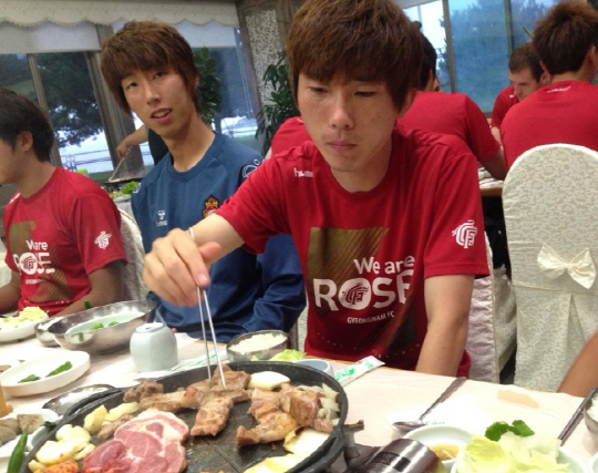 '뚱뚱이'보다 '거구'라는 표현이 더 어울리는 박주성은 정반대의 케이스다. 지난해 말 발목 부상 이후 장기간 쉬었던 박주성은 올 초 몸무게가 0.1톤에 육박했다. 최근 경기에 복귀하면서 10kg이 빠진 박주성은 90분을 모두 소화하기 위해 이마저도 줄여야 하는 상황이다. 이번 전훈에서 박주성의 목표치는 3kg을 더 뺀 85kg이다. 죽을 맛이다. 박주성은 밥 반 공기와 닭 가슴살 두 조각으로 매 끼니를 때우고 있다. 물 마시는 것조차 조심하고 있다.