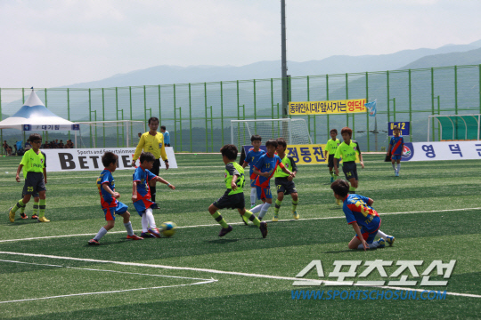 미래의 태극전사들이 영덕의 녹색 그라운드를 누비고 있다. 제1회 영덕대게배 전국유소년축구대회(주최:경북 영덕군, 주관:스포츠조선, SBS ESPN, 비트윈 스포츠&엔터테인먼트)가 24일 화려하게 막을 올렸다. 7일간 펼쳐지는 이번 대회는 10세(초등 4학년 이하)·12세 이하(초등 6학년 이하) 각 36개팀, 총 72개팀이 참가했다. 각급별 36개팀이 9팀씩 4개조로 나뉘어 풀리그 방식으로 예선전을 치른 뒤 각 조 상위 4팀이 16강 결선 토너먼트로 우승팀을 가리게 된다.