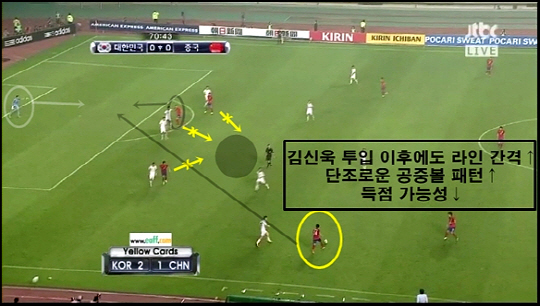 경기를 논하기 전, 중국과 호주의 차이점에 대해 짚어보자. 선수의 몸 상태나 동기 부여 면에서 누가 더 단단했느냐는 것이다. 호주는 지난 4월 A리그를 마친 뒤 휴식기를 거치며 감각이 덜 올라온 상태였고, 미드필더와 수비 사이의 간격이 벌어져 경기 내내 홍명보호의 공격 연계를 허용했다. 중국 역시 상당 시간 아래에 머물렀는데, 여기엔 수동적으로 밀려나기만 했다기보다는 능동적으로 내려가려는 전략적인 의도도 담겨있었다. 최전방-최후방 라인을 3~40m 이내로 좁힌 이들은 앞선의 몇몇 선수를 활용해 꾸준히 꾸준히 노렸다. 여기에 태국에 당한 1-5 완패의 정신적인 자극도 있어 어쩌면 호주보다 더 까다로운 상대였다는 생각이다.