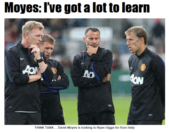 데이비드 모예스 맨유 감독의 얘기다. 스스로 유럽 무대 경험 부족을 인정했다. 그리고 배우겠단다. 모예스 감독은 25일(한국시각) 영국 일간지 더 선과의 인터뷰에서 "나는 빨리 많은 것을 배워야 한다. 라이언 긱스나 챔피언스리그 경험이 많은 몇몇 선수들에게 많은 얘기를 들을 것이다. 단순히 플레이에 관한 것만은 아니다"라고 밝혔다.