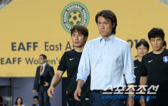 무득점과 무실점의 톱니바퀴에서 고민에 고민을 거듭하고 있는 홍 감독, 한-일전은 무조건 넘어야 하는 고개다. 김성원 기자 newsme@sportschosun.com