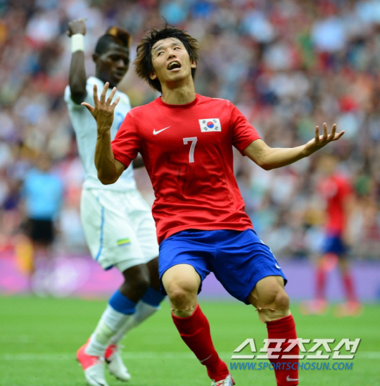 | ◇김보경의 레바논전 부진으로 최강희호의 중앙 고민은 더 커지게 됐다. 김보경이 올림픽대표팀 시절이던 지난해 8월 1일(한국시각) 영국 런던 웸블리 스타디움에서 열린 가봉과의 2012년 런던올림픽 본선 조별리그 최종전에서 골 찬스가 무산되자 아쉬워 하고 있다. 런던=올림픽사진공동취재단 |