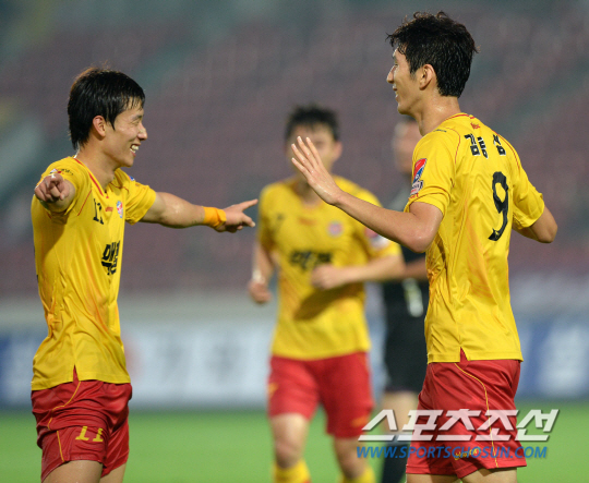 김태환은 올시즌 19경기 1골4도움이다. 공격포인트 목표 10개중 50%를 달성했다. 김동섭은 올시즌 21경기에서 8골1도움을 기록했다. 광주에서 2회 연속 7골을 기록했던 김동섭은 마의 7골을 넘었다. '절친' 김태환의 도움으로 8호골을 쏘아올렸다. 17경기를 남겨놓고 15골 목표중 절반 이상을 달성했다.