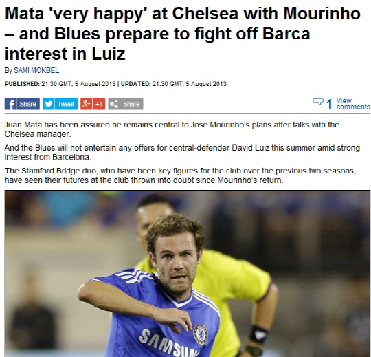 마타는 지난시즌 맹활약을 펼치며 첼시의 에이스로 떠올랐다. 그러나 무리뉴 감독이 새롭게 첼시 지휘봉을 잡으며 다른 팀으로 이적할 수 있다는 보도가 나왔다. 급기야는 무리뉴 감독과 사이가 좋지 않다는 얘기까지 나돌았다. 마타는 6일(한국시각) 영국 일간지 데일리메일을 통해 이를 정면으로 반박했다.