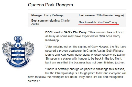 한편 윤석영은 영국 공영방송 BBC가 2013~2014 챔피언십 시즌 개막을 앞두고 구단별로 뽑은 '주목할 선수(One to watch)'에 이름을 올렸다. QPR의 주목할 선수, 윤석영이 드디어 첫단추를 꿰었다. 전영지 기자 sky4us@sportschosun.com