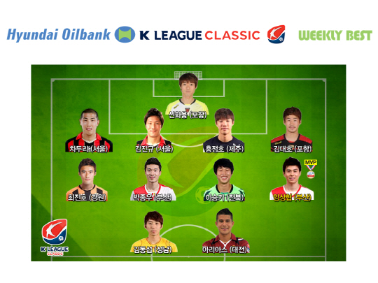 베스트11 투톱에는 김동섭(성남)과 아리아스(대전)이 이름을 올렸다. 아리아스는 K-리그 데뷔골을 신고했다. 최고의 미드필더로는 임상협 이승기(전북) 박종우(부산) 최진호(강원)가 선정됐다. 최고의 수비수에는 김대호(포항) 홍정호(제주) 김진규 차두리(이상 서울)이 뽑혔다. 최고의 수문장 자리는 포항의 신화용에게 돌아갔다.