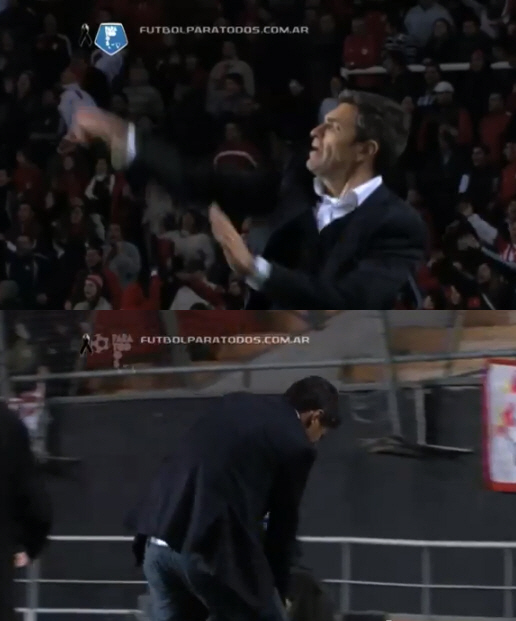 그 순간 감독의 오른쪽 어깨가 탈구됐고, 고통 속에서 팔을 제대로 가누지 못하며 경기장을 빠져 나왔다.