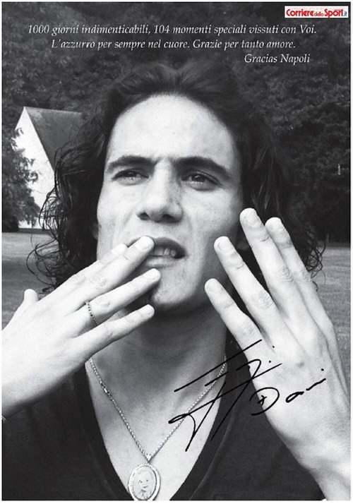 에딘손 카바니(파리 생제르맹)가 프랑스 리그에 데뷔하는 날 자신을 키워준 나폴리 팬들에게 감사 인사를 전했다.