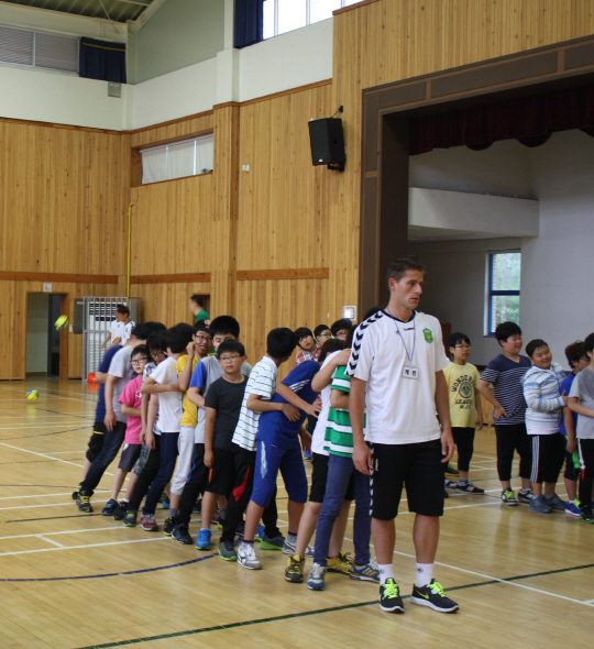지난 6월 초등학생을 대상으로 재능 기부에 나선 전북의 외국인 공격수 케빈. 사진제공=전북 현대