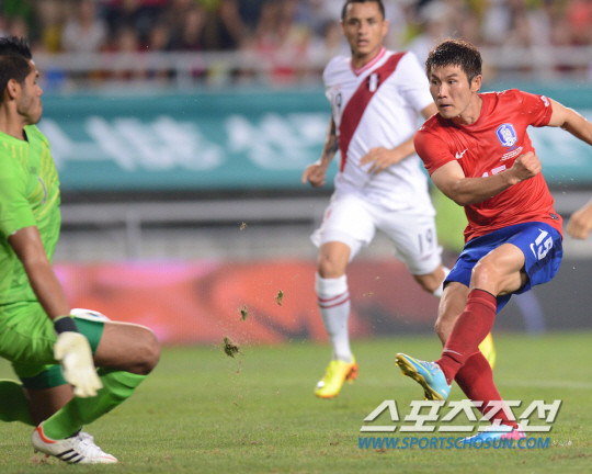 홍명보 감독이 이끄는 한국 축구대표팀이 14일 저녁 수원 월드컵경기장에서 페루를 상대로 친선경기를 펼쳤다.한국 조찬호의 왼발 슈팅이 페루 골키퍼의 선방에 막혀 노골이 되었다.