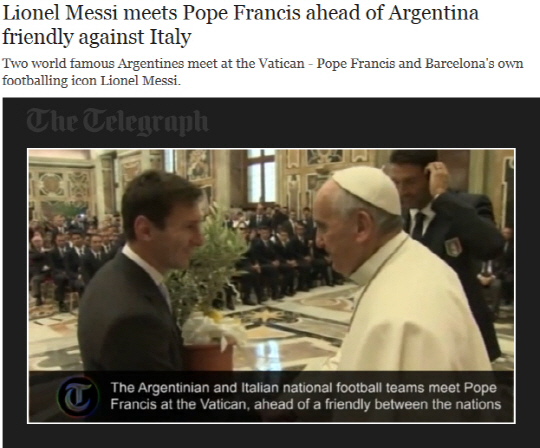 15일 열릴 예정인 아르헨티나와 이탈리아의 친선경기는 교황 프란치스코를 위한 헌정 경기로 마련됐다. 아르헨티나 출신인 프란치스코 교황은 열성적인 축구팬으로 알려져 있다. 경기가 열리는 이탈리아 로마에 교황청이 있어 프란치스코 교황을 포함한 카톨릭 성직자들이 대거 경기장을 찾을 예정이다. 메시는 경기에 못나서게 됐지만 아르헨티나 대표팀과 함께 이미 교황청을 찾아 교황을 만났다. 메시는 자신의 사인이 담긴 유니폼과 올리브 나무 화분을 선물했다. 텔레그래프에 따르면 프란치스코 교황은 선수들에게 인기에는 책임이 따른다며 행동에 신중을 기할 것을 당부했다. 이어 프란치스코 교황은 '고국인 아르헨티나와, 교황청이 있는 이탈리아 중 어느 팀을 응원하느냐'는 질문에 "한 팀을 응원하기가 상당히 곤란하다"고 답해 웃음을 자아냈다.