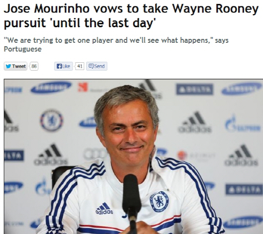 공격진 보강을 노리는 무리뉴 감독은 올여름 내내 루니 영입에 관심을 보였다. 세차례나 영입제안을 했을 정도다. 우승 라이벌 팀에 '에이스'를 내줄 수 없다며 맨유는 일단 첼시의 제안을 모조리 차단하고 있다. 그러나 무리뉴 감독은 마지막 순간까지 루니 영입에 도전하겠다고 했다.