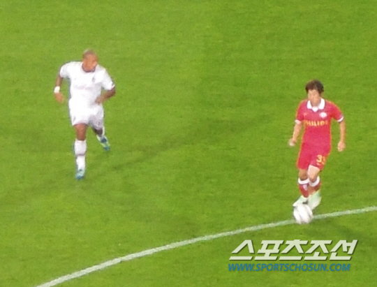 박지성은 에인트호벤 임대 전까지 퀸스파크레인저스(QPR)에서 프리시즌 일정을 제대로 소화하지 못했다. 에인트호벤에서 동료들과 발을 맞춘 시간도 짧았다. 우려는 기우였다. 박지성은 풍부한 경험과 특유의 활동량을 앞세워 팀 공격에 일조했다. 전반 7분엔 아크 정면에서 감각적인 힐킥으로 2선 침투하던 조르지니오 바이날둠에게 유효슈팅 기회를 열었다. 전반 24분엔 페널티에어리어 왼쪽에서 AC밀란 수비수 3명이 포진한 사이를 돌파해 들어가는 위협적인 장면을 연출했다. 전반 막판엔 코쿠 감독의 지시로 왼쪽 측면을 책임졌던 맴피스 데페이와 자리를 맞바꾸기도 했다.