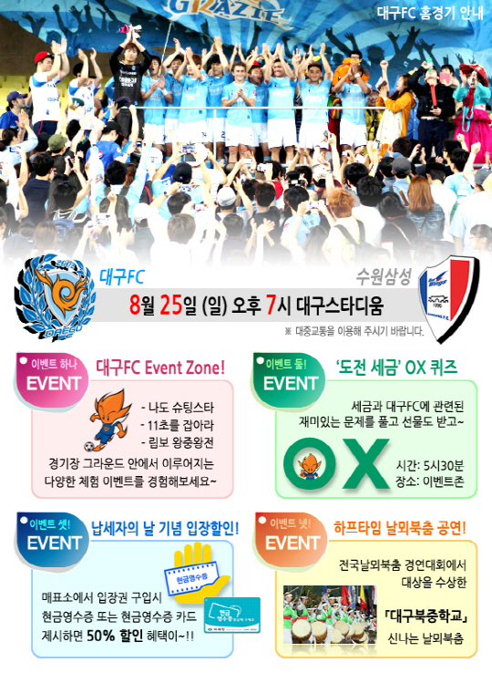 대구FC가 25일 열리는 수원과의 K-리그 클래식 홈경기를 '모범 납세자의 날'로 정했다.