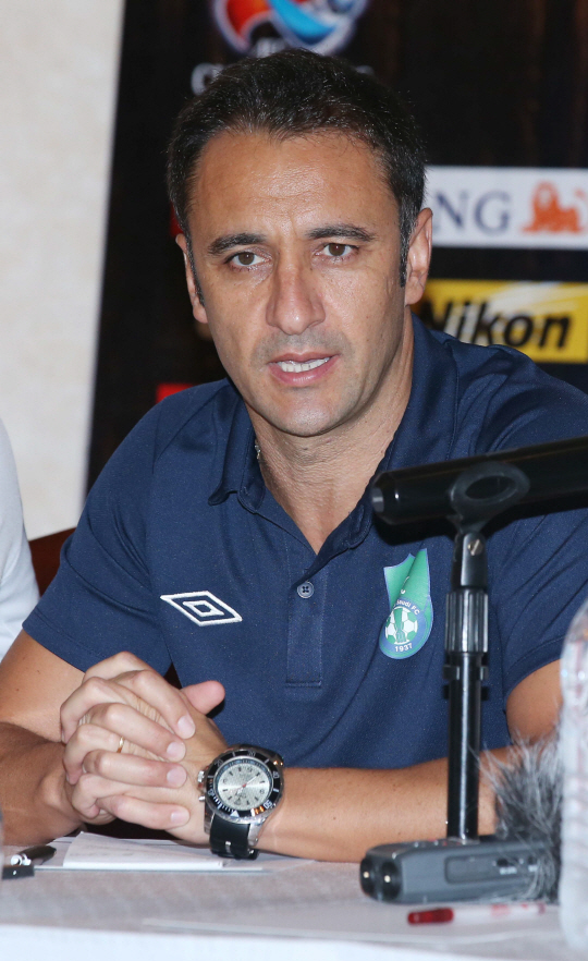 2013 아시아축구연맹(AFC) 챔피언스리그 8강1차전 FC서울과 알 아흘리(사우디)의 경기를 하루 앞둔 20일 사우디아라비아 제다의 메리어트호텔에서 열린 공식기자회견에서 알 아흘리의 비토르페레이라 감독이 취재진의 질문에 답하고 있다. 제다(사우디)=사진공동취재단