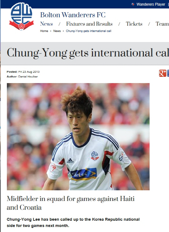 볼턴이 이청용의 A대표팀 승선을 알렸다.