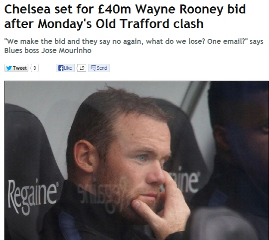 25일(한국시각) 영국 일간지 데일리미러는 첼시가 맨유와의 일전을 끝낸 뒤 루니 영입을 위한 최후의 시도를 할 것이라고 보도했다. 첼시가 준비한 이적료는 4000만파운드다. 데일리미러는 후안 마타를 트레이드 카드로 사용할 수도 있다고 전했다. 토트넘행이 유력하던 윌리안 하이재킹에 사실상 성공한 첼시는 루니가 올시즌 성공을 위한 마지막 퍼즐이라고 간주하고 있다. 조제 무리뉴 감독은 "우리는 최대 2명 정도의 선수를 영입할 것이다. 두번째 영입이 성사되면, 그것은 우리의 마지막 퍼즐이 될 것이다"고 했다.