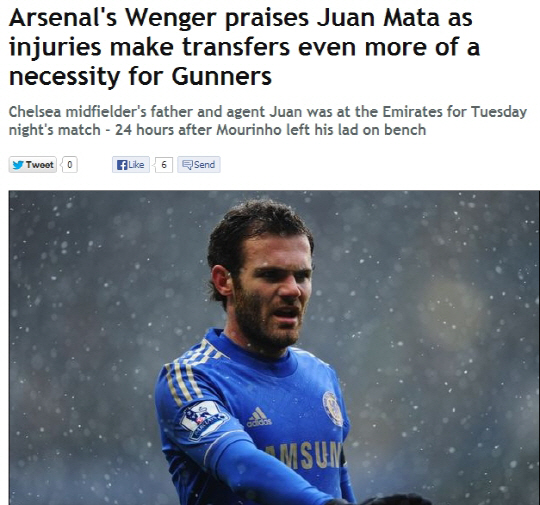 아틀레티코 마드리드도 마타 영입전에 나섰지만, 아스널과 토트넘의 적극적인 행보에 두손을 들었다.