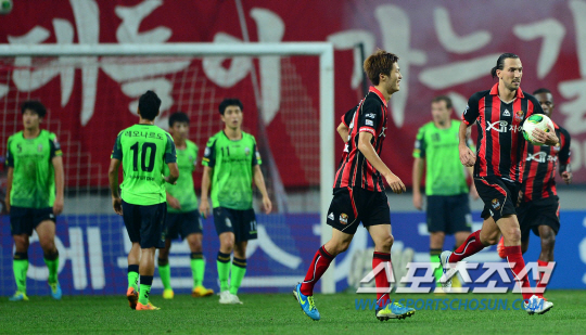 그사이 경쟁자들이 추월했다. 두 차례나 해트트릭을 작성한 제주의 득점기계 페드로가 15골 1위를 질주하고 있다. 김신욱(울산)일 14골, 전북 이동국과 케빈이 각각 12골과 11골, 김동섭(성남)이 11골을 기록 중이다. 데얀은 지난달 31일 제주전에서 복귀했다.