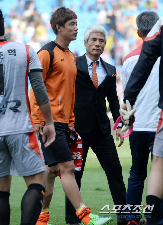 양 팀 감독은 경기 전 선수들에게 '서두르지 말 것'을 나란히 주문했다. 분위기는 달랐다. 제주는 반드시 승리해야 하는 반면, 부산은 여유가 있었다. 윤성효 부산 감독은 "우리보다 상대가 급하다. 서두르지 않으면 우리에게 기회가 올 것이다"고 했다. 박경훈 제주 감독은 "우리는 반드시 이겨야 하는 경기다. 서두르면 경기를 잘 풀어나가지 못할 수 있다"고 했다. 분위기는 그대로 경기장에 투영됐다. 부산은 여유있는 경기 운영을 펼쳤다. 제주는 허둥대는 모습이 역력했다. 선제골도 부산의 몫이었다. 전반 36분 김익현이 기가 막힌 왼발슛을 터뜨렸다. 제주는 후반 공격에 올인했지만 이렇다할 찬스를 만들지 못했다. 설상가상으로 홍정호마저 다쳤다. 모두가 제주의 그룹B 행을 얘기하는 순간, 영웅이 탄생했다. 마라냥이었다. 7월 13일 이후 무득점에 시달리던 마라냥은 후반 11분과 15분 연속골로 팀을 벼랑 끝에서 구해냈다. 제주의 2대1 승리가 확정되자, 박 감독은 두팔을 들어 기쁨을 표시했다. 반면 눈앞에서 그룹A 행을 놓친 윤 감독은 벤치를 붙잡고 한참이나 그라운드를 응시했다.