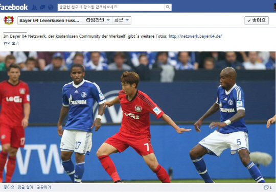| 샬케와의 경기에 나선 손흥민이 드리블하고 있다. 사진캡처=레버쿠젠 페이스북 |