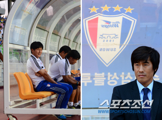 서 감독의 자리가 비워져 있는 벤치의 모습(왼쪽)과 지난 5월 5일 10라운드 경기 도중 서 감독의 모습.