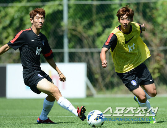 4일 오후 6시 30분 홍명보호의 공식 훈련이 끝났다. 그러나 슈팅 삼매경에 빠진 선수가 있었다. '1000만유로의 사나이' 손흥민(21·레버쿠젠)과 구자철(23·볼프스부르크)이었다.