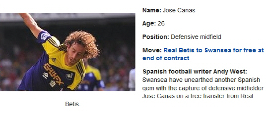 카나스는 자유계약으로 스완지시티 유니폼을 입었다. 카나스는 지난시즌 베나트와 함께 레알 베티스의 중원을 이끌며 팀을 6위까지 이끌었다. 그는 포백 앞에서 패스와 감각적인 수비를 앞세운 전형적인 스페인식 수비형 미드필더다. 미카엘 라우드럽 감독의 구미에 딱 맞는 선수이기도 하다. 지아케리니는 이탈리아 대표팀 공격수다. 언제나 팀에 헌신하는 선수로 팬들의 사랑을 듬뿍 받고 있다. 선덜랜드 이적때도 많은 유벤투스 팬들의 불만이 있었다. 체구는 작지만 포기하지 않는 근성과 수준급의 기술로 많은 골을 잡아낼 수 있는 선수다.