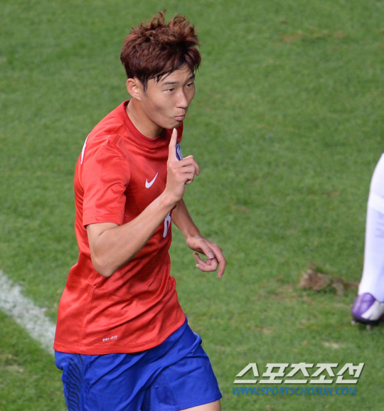 6일 오후 인천축구전용경기장에서 한국과 아이티의 친선경기가 열렸다. 전반 선취골을 성공시킨 한국 손흥민이 환호하고 있다. 인천=김경민 기자 kyungmin@sportschosun.com