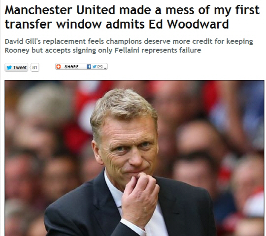 데이비드 모예스 감독은 올여름 두명의 중앙 미드필더와 왼쪽 윙백을 원했다. 그러나 이적시장 마감일 마루앙 펠라이니 한명을 더한 것에 그쳤다. 영국 일간지 데일리미러는 6일(한국시각) 우드워드 사장이 이번 여름이적시장에서 맨유가 노린 선수들을 놓친 비판에 대해 받아들일 것이라고 했다고 보도했다.