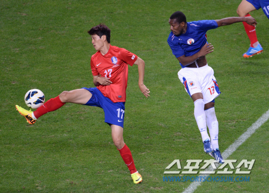 | ◇이청용이 6일 인천축구전용구장서 열린 아이티와의 친선경기에서 상대 마크를 따돌리고 볼을 다루고 있다. 인천=김경민 기자 kyungmin@sportschosun.com |