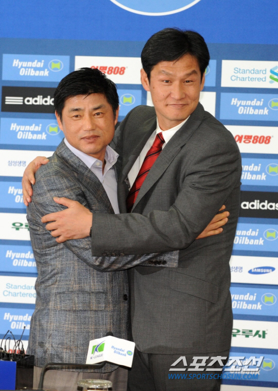 윤성효 부산 감독도 그렇지만 최 감독도 무조건 이겨야 하는 일전이었다. 두 사령탑의 인연은 질기다. 중·고·대학(동래중→동래고→연세대) 선후배 사이다. 51세인 윤 감독이 42세의 최 감독보다 9년 위다. 허물없는 사이지만 그라운드에서는 불꽃이 튄다. 최 감독은 악연이다. 지난해까지 수원을 지휘한 윤 감독이 5승1무로 최 감독을 지배했다. 올해 3월 17일 부산 홈(1대0 승)에서도 징크스는 이어졌다. 6월 23일 길이 틀어졌다. 최 감독이 안방에서 마침내 윤 감독을 상대로 첫 승을 거뒀다. 1대0으로 웃었다. 하지만 기쁨도 잠시, 지난달 7일 FA컵 16강전에서 윤 감독이 2대1로 다시 승리했다. 윤 감독과의 상대전적은 1승1무7패였다.