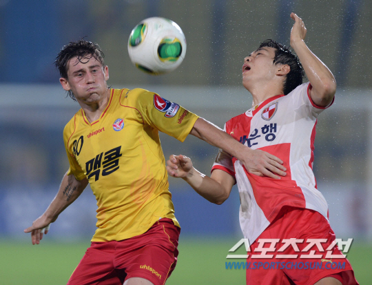 11일 오후 성남 탄천종합운동장에서 2013 K리그 클레식 부산과 성남의 경기가 열렸다. 성남 제파로프(왼쪽)와 부산 한지호가 볼을 다투고 있다. 성남=김경민 기자 kyungmin@sportschosun.com