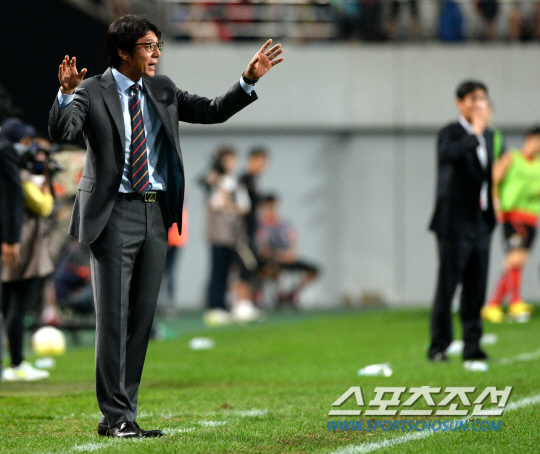 서울과 포항의 K리그 클래식 2013 28라운드 경기가 11일 서울월드컵경기장에서 열렸다. 포항 황선홍 감독이 작전지시를 하고 있다. 포항은 15승 7무 5패(승점 52)로 리그 선두를 달리고 있고, 4위 서울은 13승 8무 6패(승점 47)로 그 뒤를 바짝 뒤쫓고 있다. 상암=허상욱 기자 wook@sportschosun.com/2013.09.11/