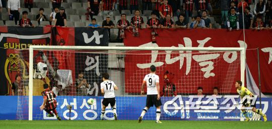 서울과 포항의 K리그 클래식 2013 28라운드 경기가 11일 서울월드컵경기장에서 열렸다. 서울 몰리나가 후반 선제골을 터뜨리고 있다. 포항은 15승 7무 5패(승점 52)로 리그 선두를 달리고 있고, 4위 서울은 13승 8무 6패(승점 47)로 그 뒤를 바짝 뒤쫓고 있다. 상암=허상욱 기자 wook@sportschosun.com