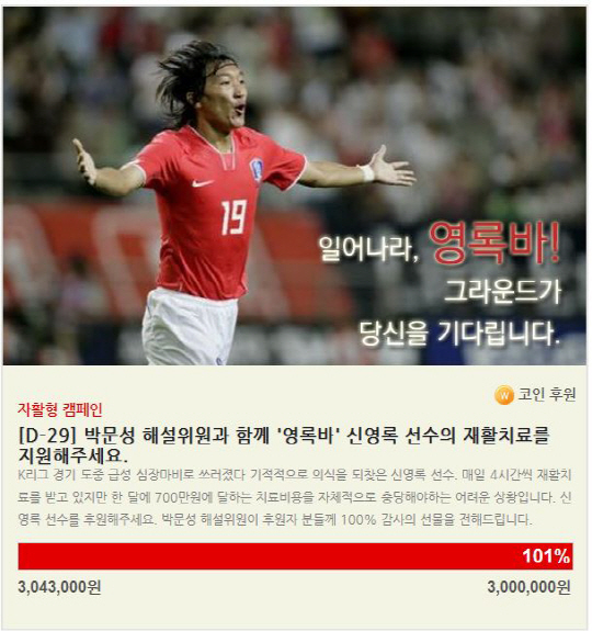 캠페인 시작부터 신영록의 안타까운 사연이 SNS와 온라인 커뮤니티를 통해 알려지면서 짧은 시간 동안 많은 이들의 따뜻한 후원이 이어졌다.