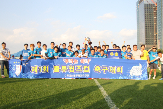 수원 삼성 팬들과 선수단이 하나된 제1회 블루윙즈컵 서포터스 축구대회에서 아발란챠 팀이 우승을 차지했다.