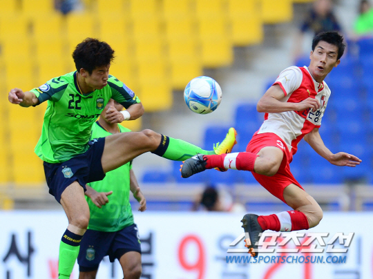 부산 아이파크와 전북 현대의 2013 FA컵 4강전이 15일 부산아시아드주경기장에서 열렸다. 전북 이규로와 부산 장학영이 치열한 공다툼을 벌이고 있다. 부산=정재근기자 cjg@sportschosun.com/2013.09.15/