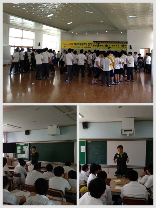 전남 드래곤즈가 16일 지역 청소년들에게 꿈과 희망의 메시지를 전달하기 위해 '팬 스킨십 마케팅-전남 드래곤즈가 간다' 제17탄을 실시했다.