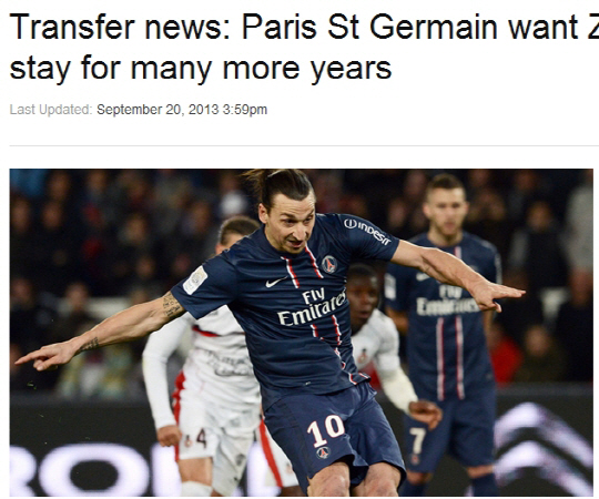 파리생제르맹이 가능한 오랫동안 즐라탄 이브라히모비치와 함께 하고 싶다는 뜻을 나타냈다. 이브라히모비치는 지난시즌 30골이 넘는 득점포를 가동하며 팀에 우승을 안겼다. 올여름 에딘손 카바니 등이 가세하며 이브라히모비치는 이적 의사를 밝히기도 했다. AC밀란, 맨시티, 레알 마드리드 등이 그의 예상행선지였다. 그러나 PSG는 이브라히모비치의 이적에 반대의사를 뚜렷이 하며 잔류시켰다. 나세르 알 켈라피 PSG 회장은 21일(한국시각) 프랑스 일간지 르퀴프를 통해 "이브라히모비치는 클럽의 영혼이다. 그는 PSG의 키플레이어다. 그가 가능한 오랫동안 PSG에 잔류하는 것은 매우 중요한 일"이라고 했다.