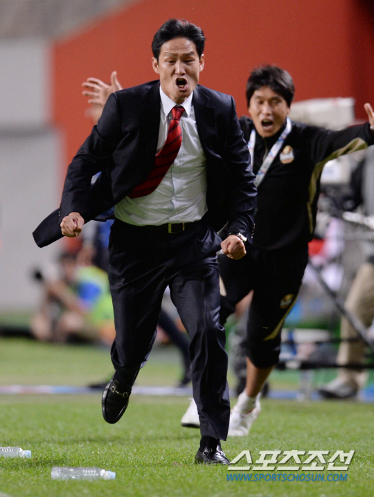 '2013 AFC챔피언스리그' 4강 1차전 FC서울과 에스테그랄(이란)의 경기가 25일 서울월드컵경기장에서 열렸다. FC서울은 1차전을 다득점으로 승리해야 텃세가 심한 이란 원정 2차전을 여유롭게 치를수 있다. FC서울 최용수 감독이 고요한의 두번째골을 보며 환호하고 있다. 상암=최문영 기자 deer@sportschosun.com /2013.09.25/ |